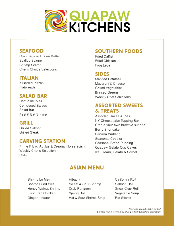 From Cajun to Asian, land to sea, sweet to savory and everything in between, the Quapaw Kitchens Buffet will hit all the culinary high points. Their massive open kitchen will put you right in the action and jump start your senses for a great meal ahead!